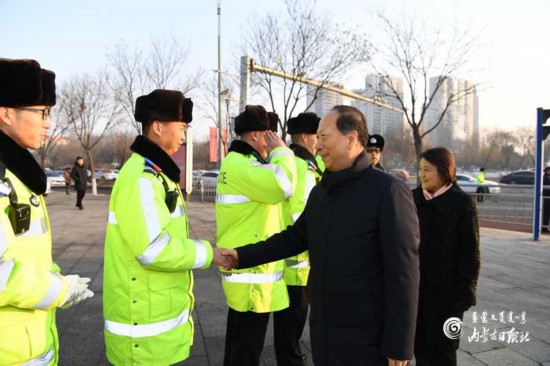 1月24日,自治區(qū)黨委書記、人大常委會(huì)主任石泰峰,自治區(qū)黨委副書記、自治區(qū)主席布小林在呼和浩特看望慰問(wèn)春節(jié)期間堅(jiān)守一線崗位的執(zhí)勤交警。 內(nèi)蒙古日?qǐng)?bào)社融媒體記者 袁永紅 攝