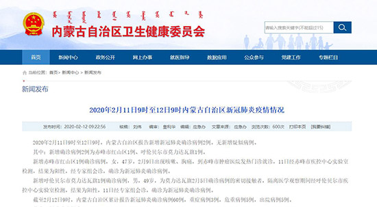 內(nèi)蒙古自治區(qū)衛(wèi)生健康委員會官網(wǎng)截圖