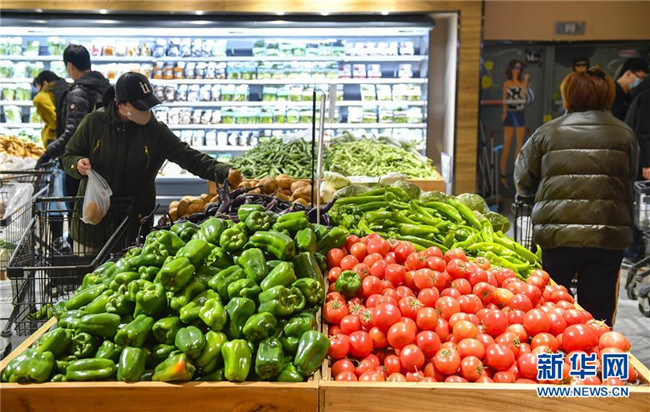 2月18日,在吉林省長(zhǎng)春市一家大型連鎖超市內(nèi),市民選購(gòu)蔬菜。 新華社記者 許暢 攝