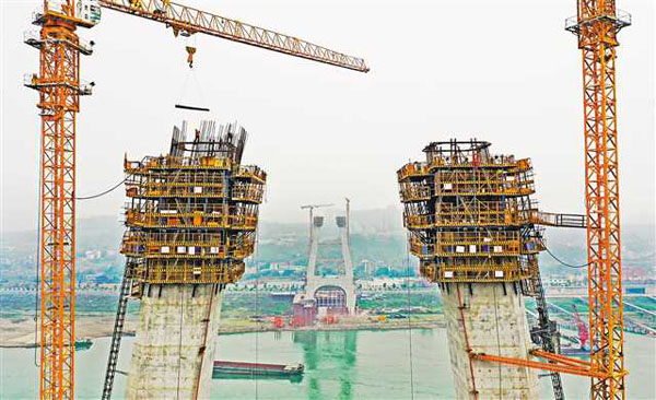 2月23日下午,萬州環(huán)線新田至高峰段新田長江大橋正式復(fù)工。這也是重慶市境內(nèi)在建的最大跨徑橋梁。新田長江大橋主跨為1020米,目前已完成主塔塔柱最高點(diǎn)150米、錨碇第一層錨塊的澆筑施工,到6月份有望實(shí)現(xiàn)主塔封頂。