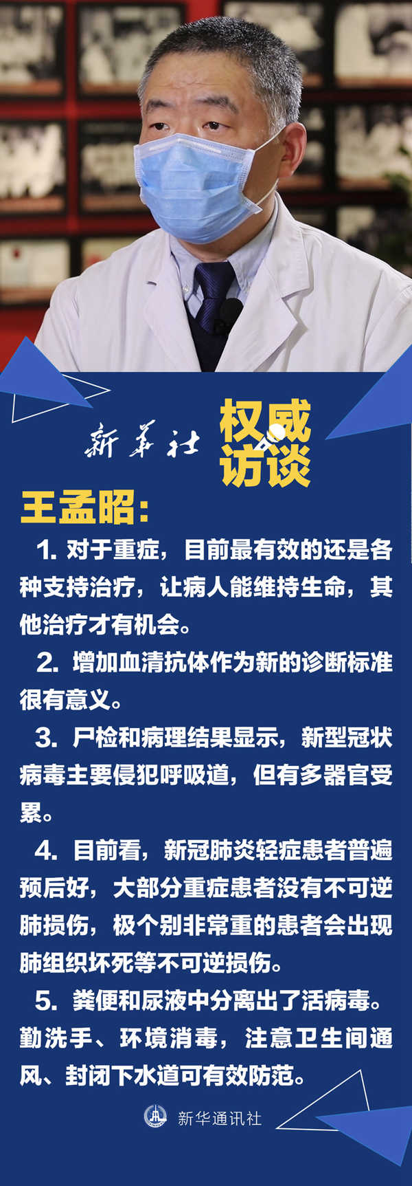 國(guó)家衛(wèi)健委近日發(fā)布《新型冠狀病毒肺炎診療方案(試行第七版)》。關(guān)于新版診療方案里加入的危重癥、重癥“預(yù)警指標(biāo)”能降低病亡率嗎?血清抗體檢測(cè)能解決核酸“假陰”問(wèn)題嗎?糞便和尿液里的病毒怎么防控?針對(duì)這些問(wèn)題,新華社記者專(zhuān)訪了北京協(xié)和醫(yī)院呼吸與重癥醫(yī)學(xué)科主任王孟昭,一起來(lái)了解一下吧。