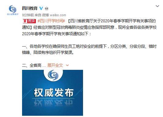 《通知》稱,經(jīng)四川省應(yīng)對新型冠狀病毒肺炎疫情應(yīng)急指揮部同意,現(xiàn)將全省各級各類學(xué)校2020年春季學(xué)期開學(xué)有關(guān)事項通知如下: