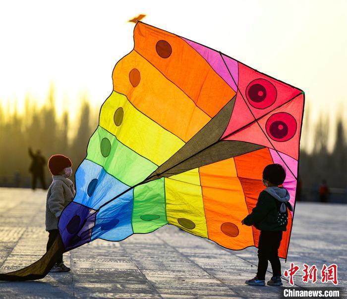 資料圖:3月22日,敦煌市民在敦煌鳴沙山下黨河大橋附近的空地上放風(fēng)箏。 王斌銀 攝