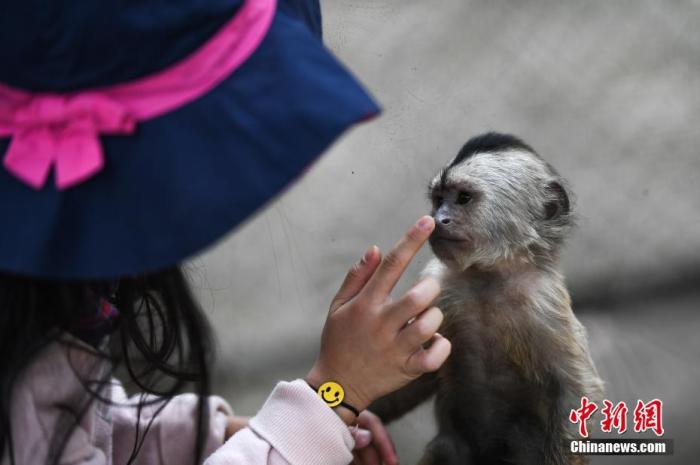資料圖:3月21日,一名兒童隔著玻璃與一只幼猴互動(dòng)。當(dāng)日,云南野生動(dòng)物園正式恢復(fù)開(kāi)放。中新社記者 康平 攝