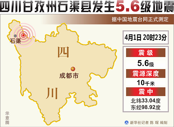據(jù)中國地震臺(tái)網(wǎng)正式測定,1日20時(shí)23分在四川甘孜州石渠縣發(fā)生5.6級地震,震源深度10千米。