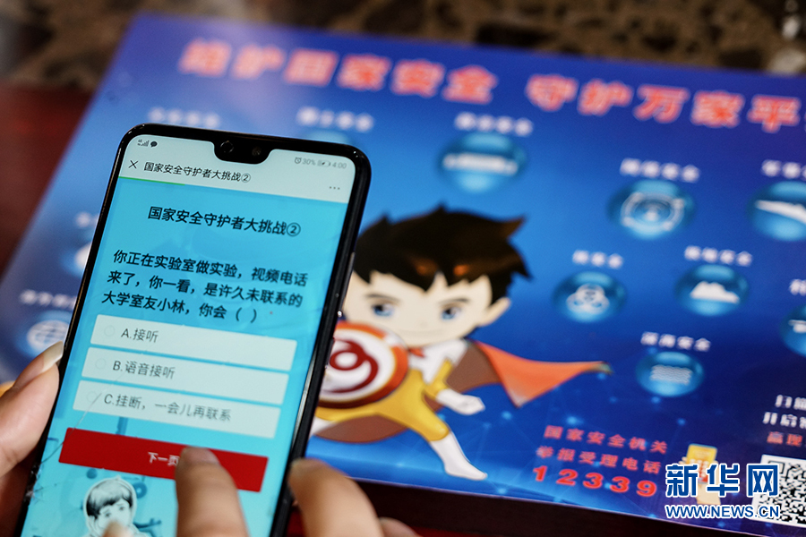 這一游戲程序把“國家安全進網(wǎng)絡(luò)”和“國家安全進課堂”相結(jié)合,測試內(nèi)容集知識性和趣味性于一體,把國家安全大政方針與人民群眾生產(chǎn)生活可能遇見的風險情況有機結(jié)合,以號召廣大人民群眾積極參與到國家安全中來,把國家安全群眾性教育落實落地。新華網(wǎng) 韓夢霖 攝