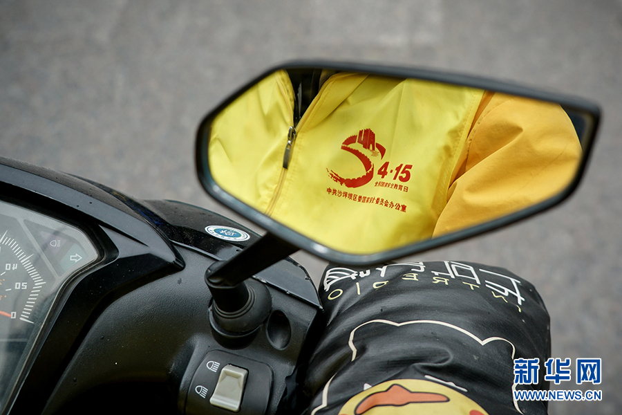 王淞騎著摩托車出發(fā)了,前往配送的小區(qū)距離不遠,熟悉道路情況的他幾分鐘就可以駕車到達。“我是國家安全宣傳使者”活動從4月13日起持續(xù)三天,預(yù)計將把上萬份宣傳品送到商家和市民手中。新華網(wǎng) 韓夢霖 攝