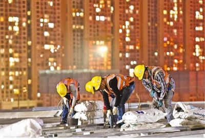 近日,在廣西柳州柳東新區(qū)國際會(huì)展中心三期項(xiàng)目工地,夜班工人在屋面作業(yè)。 黎寒池?cái)z(影像中國)