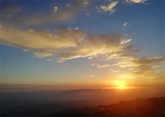 傍晚時分,當時光悄悄溜走,極目遠眺,太陽已收起耀眼奪目的光芒,溫和的映照著綿延起伏的山巒,群峰沐浴在余輝的彩霞里,就讓自己陶醉在這美景之中,戀戀不舍的與夕陽道聲“再見”。