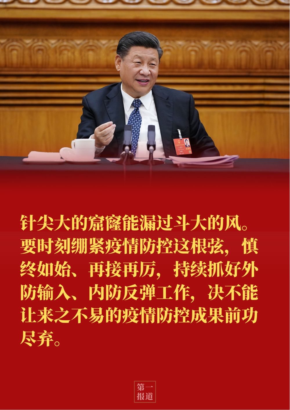 習(xí)近平指出:“針尖大的窟窿能漏過(guò)斗大的風(fēng)。要時(shí)刻繃緊疫情防控這根弦,慎終如始、再接再厲,持續(xù)抓好外防輸入、內(nèi)防反彈工作,決不能讓來(lái)之不易的疫情防控成果前功盡棄。”