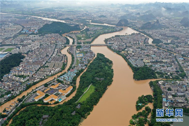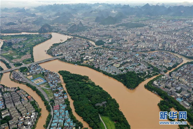 受持續(xù)強(qiáng)降雨影響,漓江桂林水文站于6月9日12時30分出現(xiàn)146.49米的洪峰水位,超警戒水位0.49米。