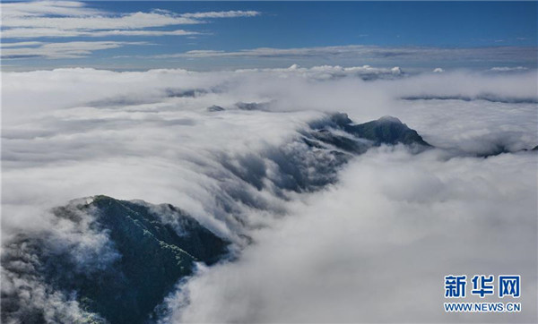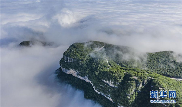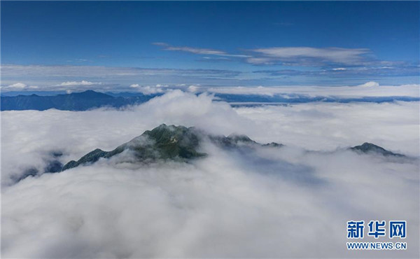 6月10日拍攝的漢中市南鄭區(qū)龍頭山景區(qū)的云海景觀(guān)(無(wú)人機(jī)照片)。雨后初霽,川陜交界的陜西省漢中市南鄭區(qū)龍頭山旅游景區(qū)云海涌動(dòng),風(fēng)光迷人。新華社記者陶明攝