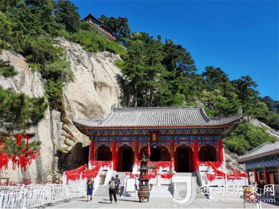 都龍廟在蒼龍嶺下,始建于北魏,南出廟東側門即蒼龍嶺。廟依幾塊巨大片狀石壁而建,構思奇巧,建筑風格別致,圖形大小與嶺的險峻相得益彰。廟后為蒼龍嶺西崖壁,蒼松成林,巖花鋪錦。廟前與救苦臺之間地面平坦,間有伏石,四周環(huán)境優(yōu)美多富變化,加之又是北峰到五云峰之間最大的坪場,故游人多在此駐足小憩。