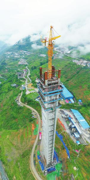6月23日,金陽(yáng)河特大橋6號(hào)主墩正在封頂。記者 何海洋 攝