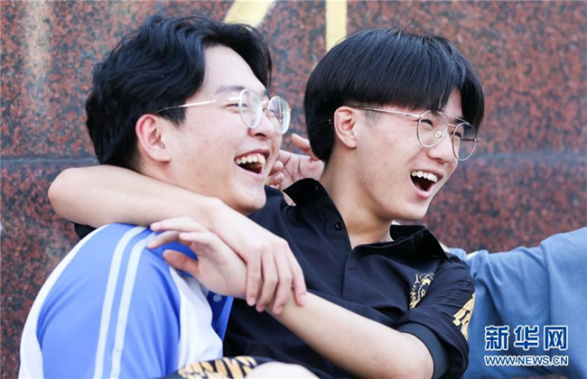 7月8日,在吉林省長春市第八中學考點門口,考生慶祝高考結(jié)束。 當日,全國部分地區(qū)2020年高考結(jié)束。 新華社發(fā)(顏麟蘊攝)