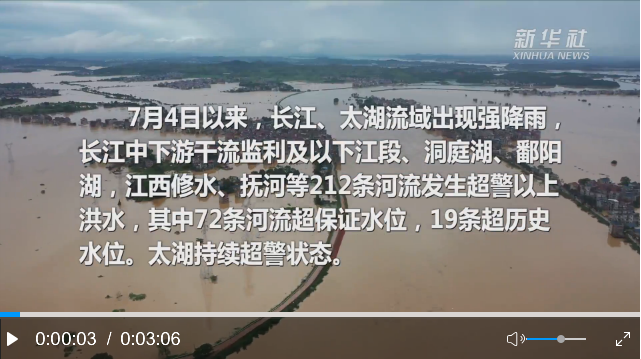 汛情嚴峻 長江流域遭受嚴重洪澇災害