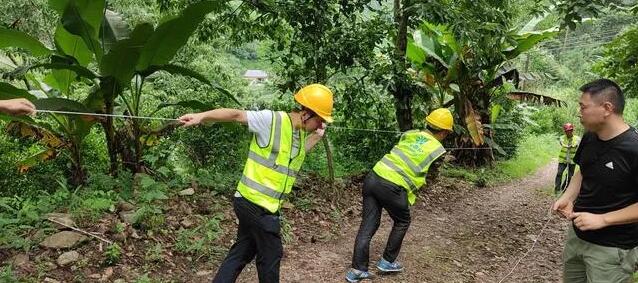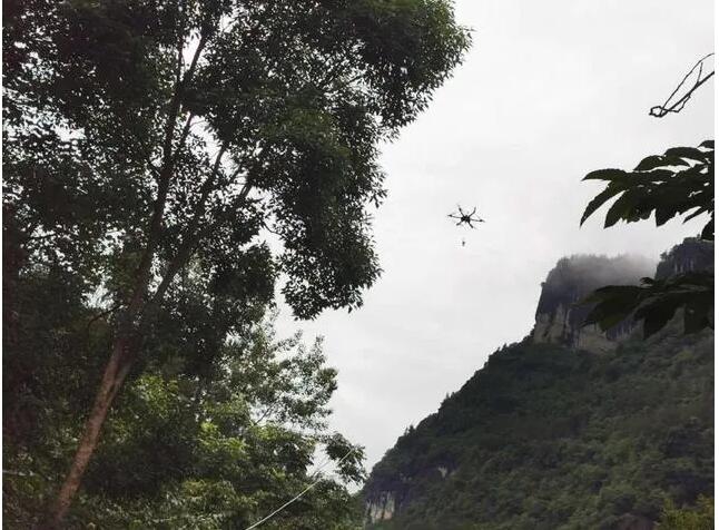 由于光纜恢復區(qū)域地勢險峻,搶修難度大,搶修人員結(jié)合現(xiàn)場實際情況后決定采用無人機牽引技術(shù)布放光纜,這樣省時、省力又安全!