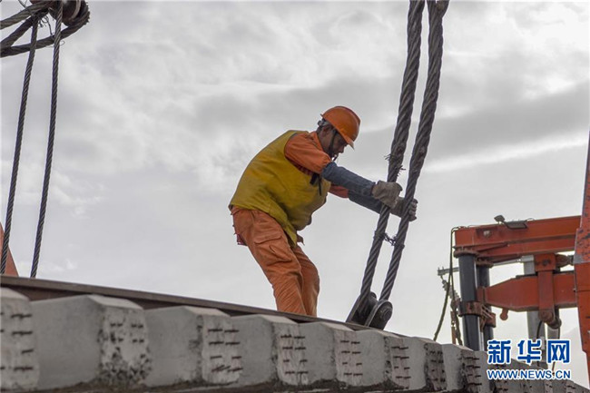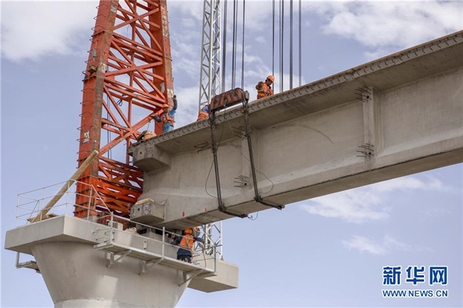 19日上午,位于新疆若羌縣依吞布拉克鎮(zhèn)的G315國道一號(hào)大橋上,隨著一根重達(dá)16噸的T梁穩(wěn)穩(wěn)落在橋墩上,新疆在建重大工程格(爾木)庫(爾勒)鐵路新疆段最后一座跨315國道的橋梁架設(shè)完工。