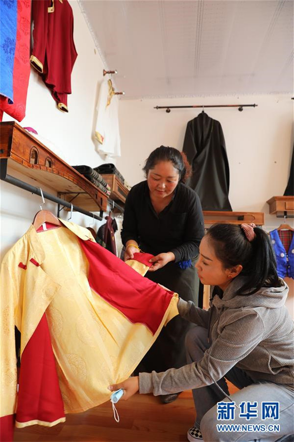 7月23日,在甘肅省甘南藏族自治州夏河縣??奇?zhèn)崗岔村的扶貧車間內(nèi),卓瑪吉(右)和扶貧車間負責人研究成衣款式。崗岔村是甘肅省甘南藏族自治州夏河縣桑科鎮(zhèn)的一個牧業(yè)村,平均海拔3000米以上。2018年,在夏河縣文明辦工作的卓瑪吉開始擔任駐村幫扶工作隊隊長,每年都有200多天待在草原上。兩年來,卓瑪吉帶領(lǐng)大家開辦扶貧車間,發(fā)展特色產(chǎn)業(yè),聯(lián)系勞務輸出。為了讓村民更全面地了解精準扶貧政策,卓瑪吉登門宣講政策。為了提高村容村貌,卓瑪吉發(fā)動大家開展廁所革命和庭院環(huán)境評比,積極響應甘南藏族自治州“全域無垃圾”創(chuàng)建行動。她還從縣城請來醫(yī)生,為村民舉辦健康講座,在全村婦女中開展“兩癌篩查”。如今,崗岔村變成了干凈、整齊、富裕、美麗的生態(tài)文明村,提前實現(xiàn)了整村脫貧。談起心愿,卓瑪吉說:“要讓草原和草原上的人都變得更美。”新華社發(fā)(杜哲宇攝)