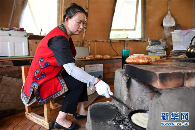 杜峰在位于敖魯古雅鄂溫克族鄉(xiāng)的鄂庫娜列巴房內烤列巴(7月14日攝)。 新華社記者 貝赫 攝