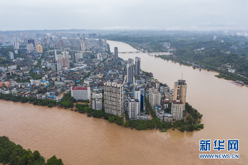 洪水中的樂山市區(qū)。