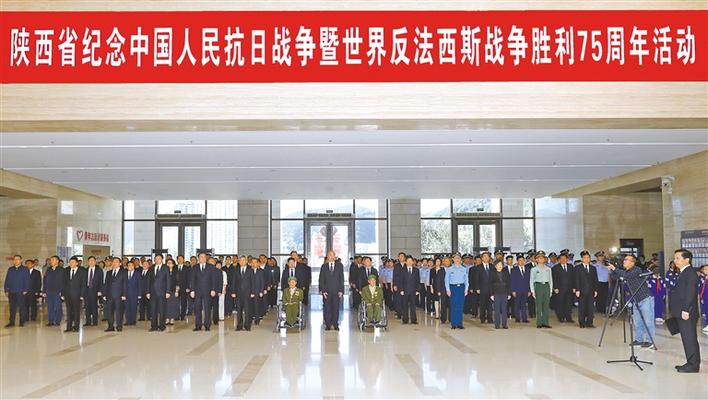 9月3日,陜西省在延安市隆重舉行紀念中國人民抗日戰(zhàn)爭暨世界反法西斯戰(zhàn)爭勝利75周年活動,深切緬懷革命先烈,大力弘揚延安精神,動員和激勵全省干部群眾不忘初心、牢記使命,為奮力譜寫陜西新時代追趕超越新篇章、實現(xiàn)中華民族偉大復興的中國夢而努力奮斗。
