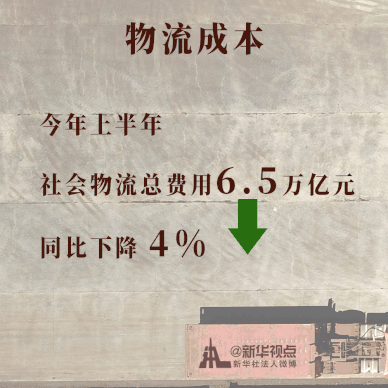 中國(guó)物流與采購(gòu)聯(lián)合會(huì)統(tǒng)計(jì)數(shù)據(jù)顯示,今年上半年,社會(huì)物流總費(fèi)用6.5萬(wàn)億元,同比下降4%。