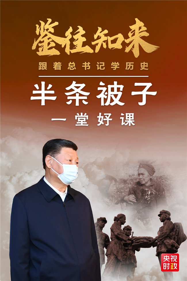 這次實地考察沙洲村,總書記多次談到這個故事的啟示。在專題陳列館,他說,“半條被子的故事”體現(xiàn)了中國共產(chǎn)黨人的初心和本色,當(dāng)年紅軍在缺吃少穿、生死攸關(guān)的時候,還想著老百姓的冷暖,真是一枝一葉總關(guān)情!老百姓也由此理解了什么是中國共產(chǎn)黨領(lǐng)導(dǎo)的人民軍隊。