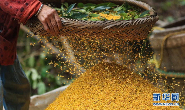 9月24日,四川省瀘州市江陽區(qū)鄰玉街道天堂村的村民在打收桂花。金秋時節(jié),四川省瀘州市江陽區(qū)鄰玉街道天堂村的村民們忙著打收桂花,制作桂花糕等美食,迎接中秋佳節(jié)的到來。新華社發(fā)(劉學懿攝)