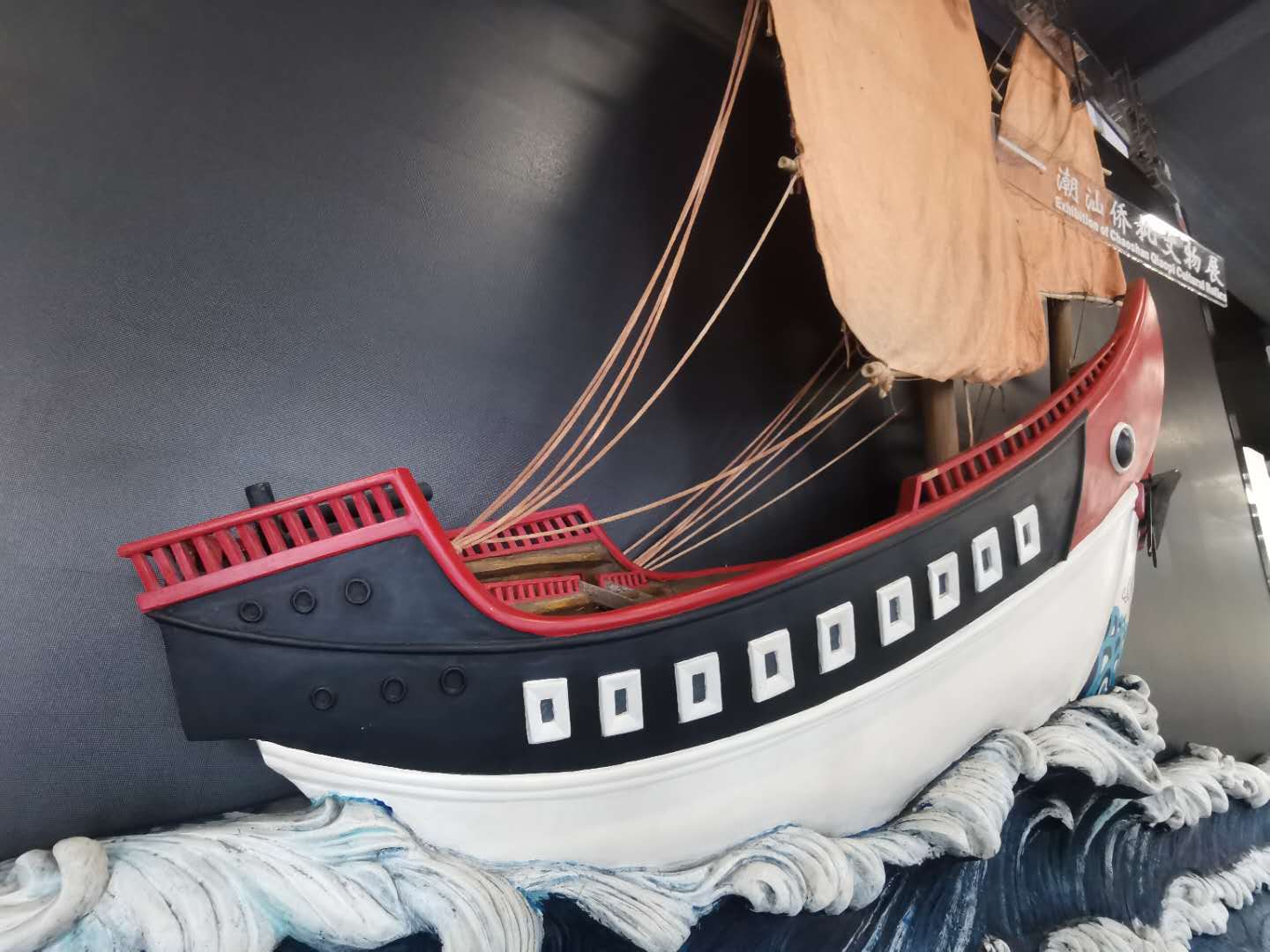 △當(dāng)年潮汕人到海外謀生,出洋所乘的是這種高桅桿的紅頭船。如今紅頭船已成為潮汕人“團(tuán)結(jié) 拼搏 拓展 創(chuàng)新”的精神象征。(總臺央視記者楊波拍攝)