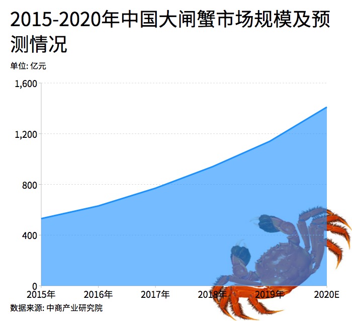 大閘蟹又被稱為中華絨螯蟹,分布在我國北起遼河南至珠江,其中以長江水系產(chǎn)量最大。近年來隨著消費(fèi)者對大閘蟹的喜愛程度的提高,其市場需求不斷增長。據(jù)相關(guān)數(shù)據(jù)統(tǒng)計2018年大閘蟹產(chǎn)量高達(dá)80萬噸左右,產(chǎn)業(yè)規(guī)模2019年突破億元,年增速約20%。據(jù)預(yù)測,到2020年我國大閘蟹市場規(guī)?;蚪咏?500億元。