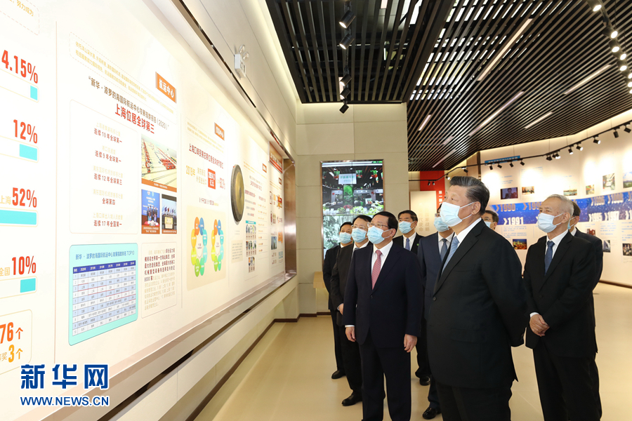 11月12日,浦東開發(fā)開放30周年慶祝大會在上海市舉行。中共中央總書記、國家主席、中央軍委主席習(xí)近平在會上發(fā)表重要講話。這是當(dāng)天上午,習(xí)近平等參觀“在國家戰(zhàn)略的引領(lǐng)下——浦東開發(fā)開放30周年主題展”?!⌒氯A社記者 殷博古 攝