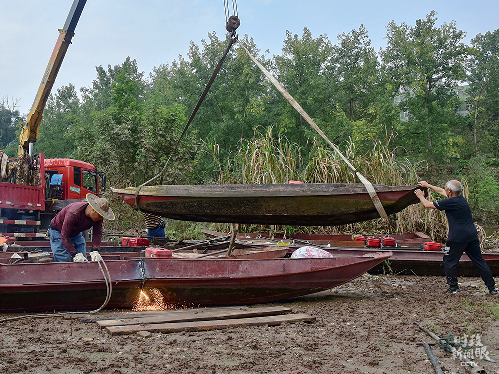 △“長(zhǎng)江禁漁”實(shí)施后,四川內(nèi)江東興區(qū)集中拆解漁船,352名漁民全部上岸,轉(zhuǎn)產(chǎn)轉(zhuǎn)業(yè)。