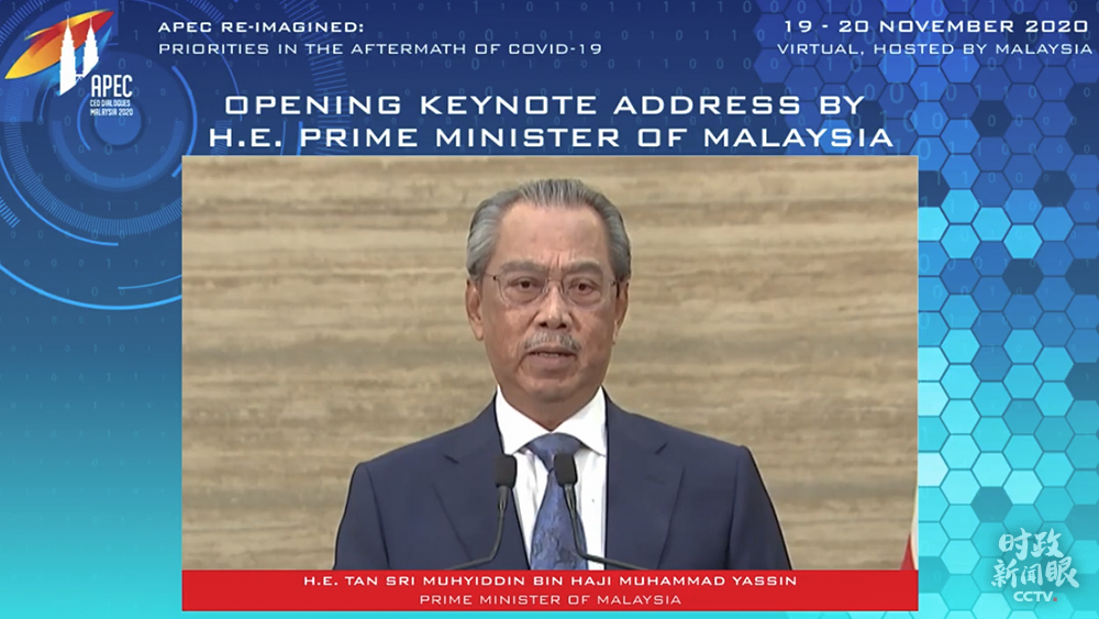 △馬來西亞總理穆希丁當(dāng)天在APEC工商領(lǐng)導(dǎo)人對話會開幕式上致辭。(來源于APEC官網(wǎng))