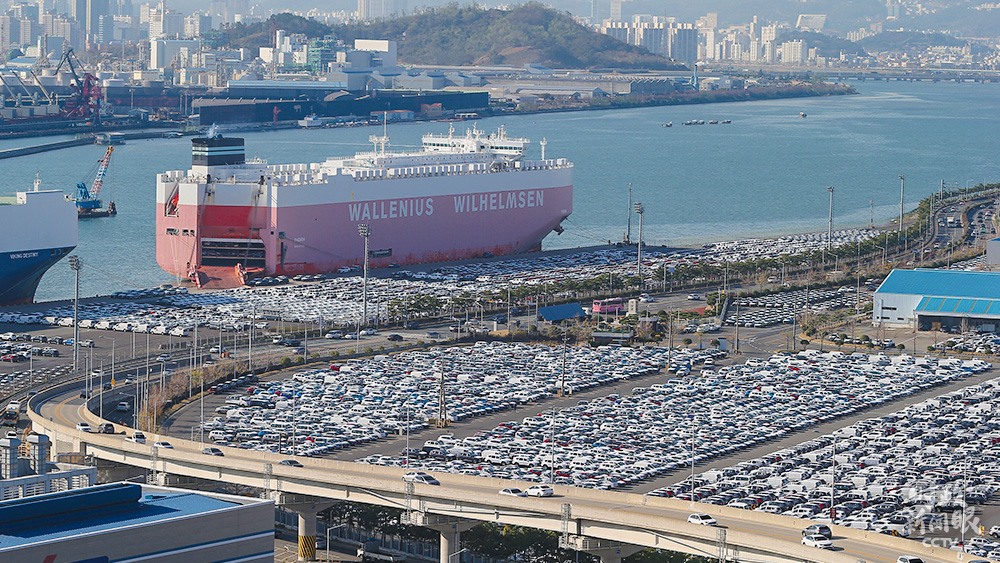 △今年9月,韓國在疫情暴發(fā)后首次實現(xiàn)出口正增長,同比增加7.6%。這是全球最大的汽車工廠——韓國蔚山汽車廠,擁有出口碼頭。