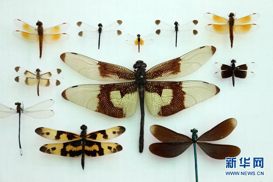 這是目前已知的世界最小蜻蜓個體與其他蜻蜓的對比(10月16日攝)。