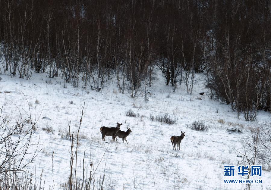 11月27日在黃崗梁國家森林公園拍攝的野生馬鹿。新華社發(fā)(宿海東 攝)