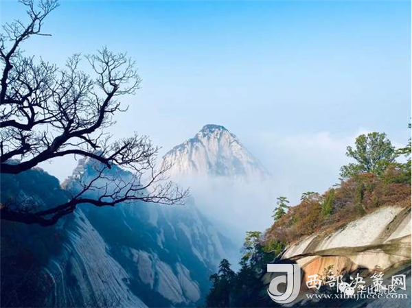 五岳中,西岳以險(xiǎn)著稱。華山于渭河平原上拔地而起,像一塊囫圇大石四面被刀削斧鑿一般,山勢雄偉,奇峰突起,前瀕黃河,后接秦嶺。