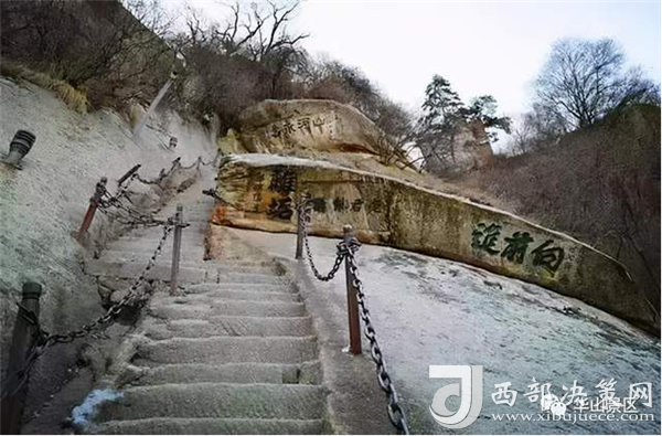 華山的登山之路蜿蜒曲折,到處都是懸崖絕壁。智取華山路開辟之前,華山只有一條十分陡峭的道路可以通到山上,人們常用“自古華山一條道”的說法來形容它的險(xiǎn)要。