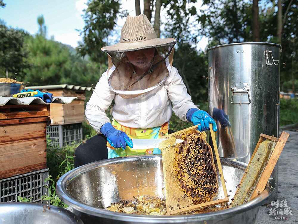 △11月23日,貴州宣布最后9個深度貧困縣退出貧困縣序列,標(biāo)志著我國新時代脫貧攻堅目標(biāo)任務(wù)如期完成。這是貴州9個深度貧困縣之一的紫云縣村民發(fā)展“林下蜂”產(chǎn)業(yè),收割蜂蜜。