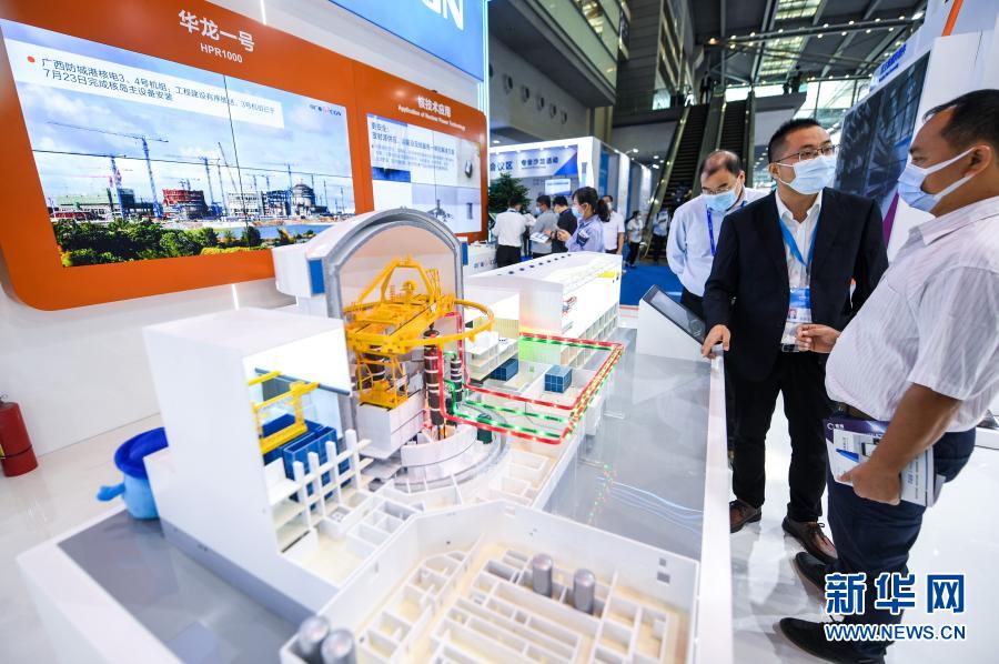 11月11日,在深圳舉行的第二十二屆中國國際高新技術成果交易會(高交會)上,參觀者在中廣核展臺了解“華龍一號”核電技術。新華社記者 毛思倩 攝