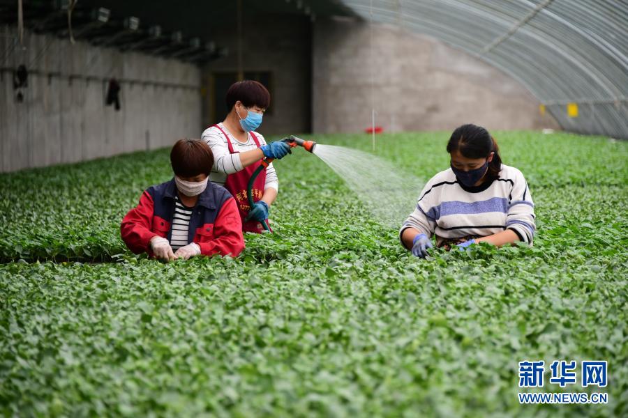 河北曲周縣一家育苗產(chǎn)業(yè)基地的工人在育苗溫棚內工作(5月4日攝)。曲周縣積極拓寬產(chǎn)業(yè)扶貧渠道,發(fā)揮當?shù)禺a(chǎn)業(yè)優(yōu)勢,統(tǒng)籌協(xié)調貧困戶利用扶貧資金入股現(xiàn)代設施農業(yè)基地,帶動群眾脫貧增收。新華社記者 朱旭東 攝