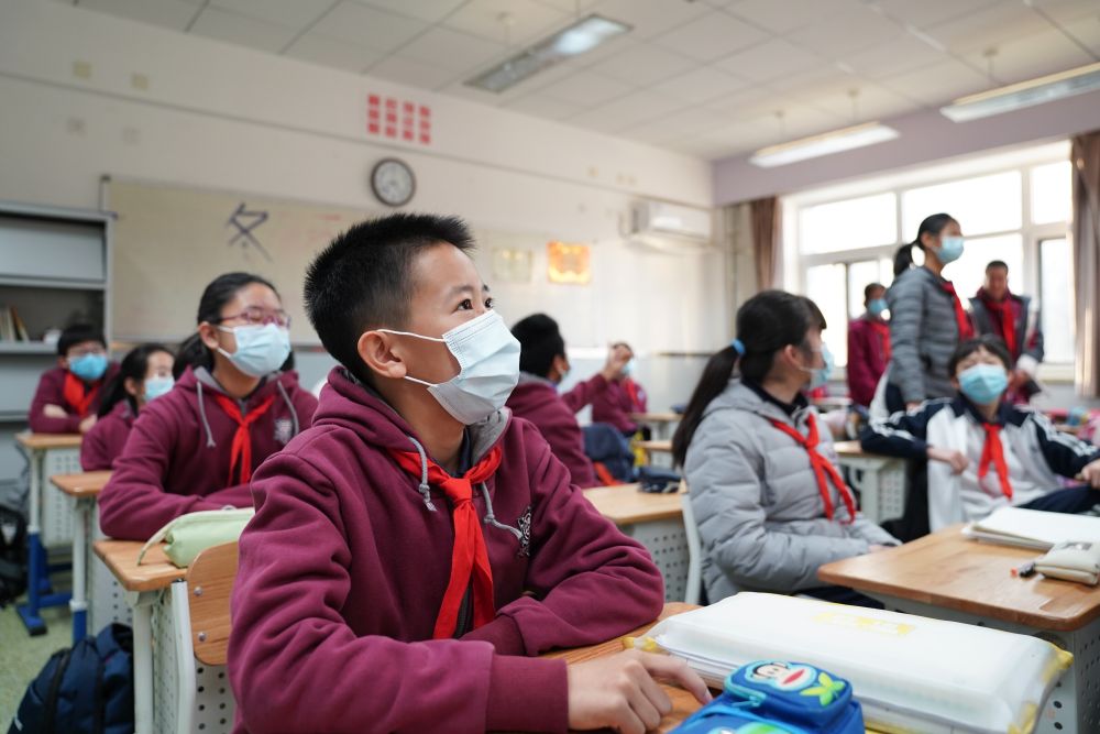 12月21日,在北京四中廣外校區(qū),蔡昊霖(前)在上英語(yǔ)課。