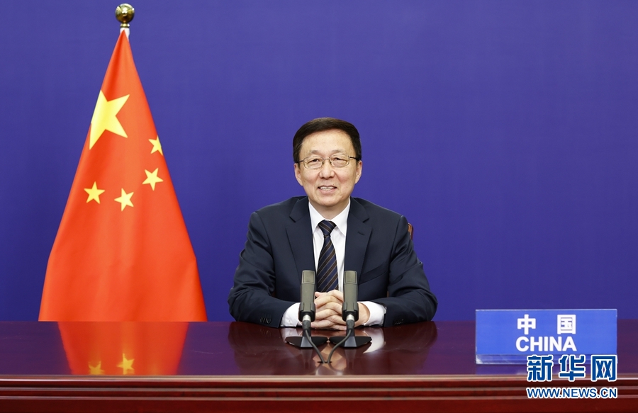 1月11日,中共中央政治局常委、國(guó)務(wù)院副總理韓正在北京以視頻方式出席“一個(gè)星球”峰會(huì)并發(fā)表講話(huà)。新華社記者 黃敬文 攝
