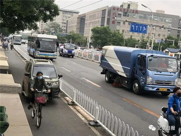 ▲一處非機(jī)動(dòng)車道上,不時(shí)有老年代步車駛過。圖片來源:北京日報(bào)