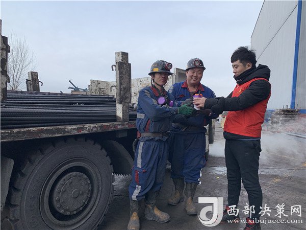 “王濤,辛苦啦!冷不冷?喝熱奶茶吧,做好防寒保暖,注意安全哦!”礦工兄弟們喝著熱奶茶,笑容掛在臉上、暖到心里。