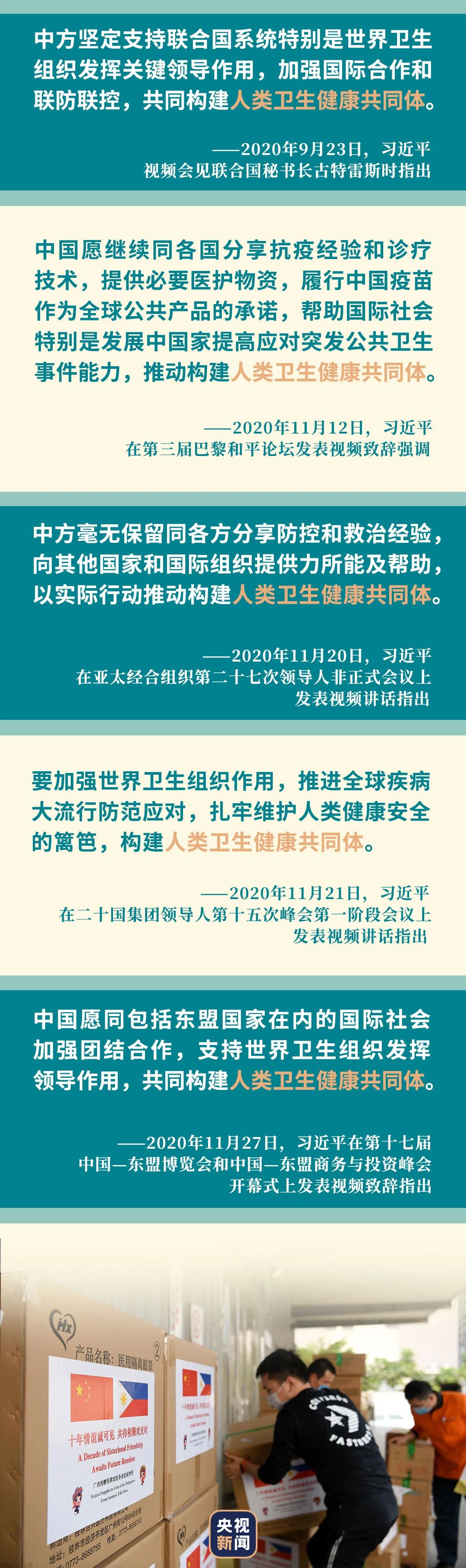 2020年3月,中國(guó)疫情防控的關(guān)鍵時(shí)刻,習(xí)近平主席向法國(guó)總統(tǒng)馬克龍致慰問電時(shí)首次提出“打造人類衛(wèi)生健康共同體”的理念。2020年4月2日,在同印度尼西亞總統(tǒng)佐科通電話時(shí),習(xí)近平重申:“中國(guó)將秉持人類命運(yùn)共同體理念,為全球疫情防控分享經(jīng)驗(yàn),提供力所能及的支持,同各國(guó)一道促進(jìn)全球公共衛(wèi)生事業(yè)發(fā)展,構(gòu)建人類衛(wèi)生健康共同體。”