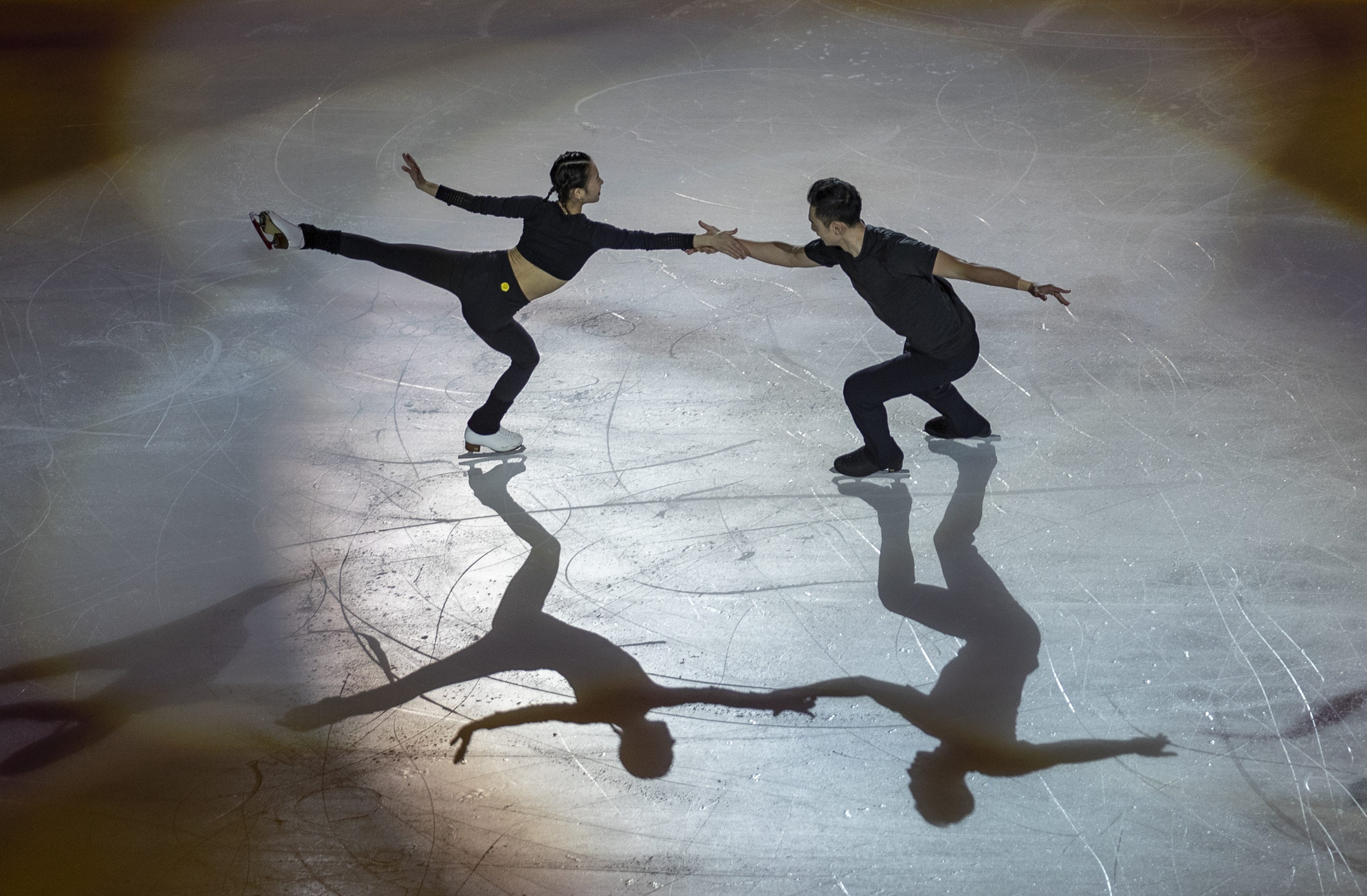 2020年11月8日,中國(guó)雙人滑組合彭程(左)/金楊進(jìn)行表演。新華社記者 黃偉 攝