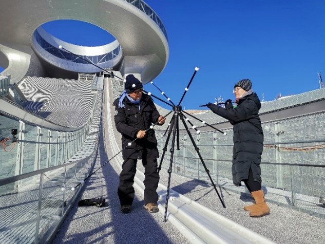 19日,習(xí)近平總書(shū)記考察河北張家口的國(guó)家跳臺(tái)滑雪中心時(shí),現(xiàn)任上海體育學(xué)院科學(xué)研究院院長(zhǎng)劉宇,正帶領(lǐng)一個(gè)7人團(tuán)隊(duì)在跳臺(tái)滑雪出臺(tái)區(qū)域,根據(jù)運(yùn)動(dòng)員出臺(tái)動(dòng)作進(jìn)行三維動(dòng)作捕捉采集與分析。