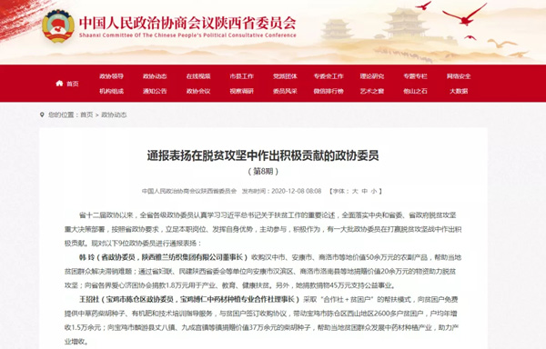 “省政協(xié)常委鄭翔玲向中國醫(yī)學科學院捐贈1000萬元;省政協(xié)常委王寶印捐贈款物513萬元,其中通過省慈善協(xié)會、富平縣慈善協(xié)會各捐資50萬元購買防疫物資,向省內防控一線人員捐贈價值413萬元的奶質營養(yǎng)食品;省政協(xié)委員、漢中市中心醫(yī)院感染管理辦公室主任陶怡秀認真參與全市病例會診和醫(yī)院感染防控指導,堅持奮戰(zhàn)在疫情防治第一線……”省政協(xié)及時對93名積極作為的各級委員進行了通報表揚,他們?yōu)閲穆殹槊癖M責的時代風采得到充分彰顯。